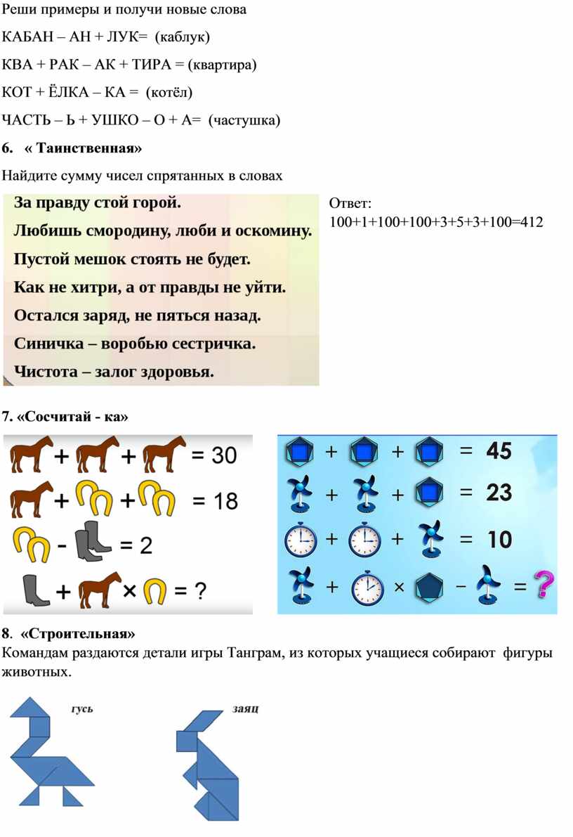 Командам раздаются детали игры Танграм, из которых учащиеся собирают фигуры животных.
