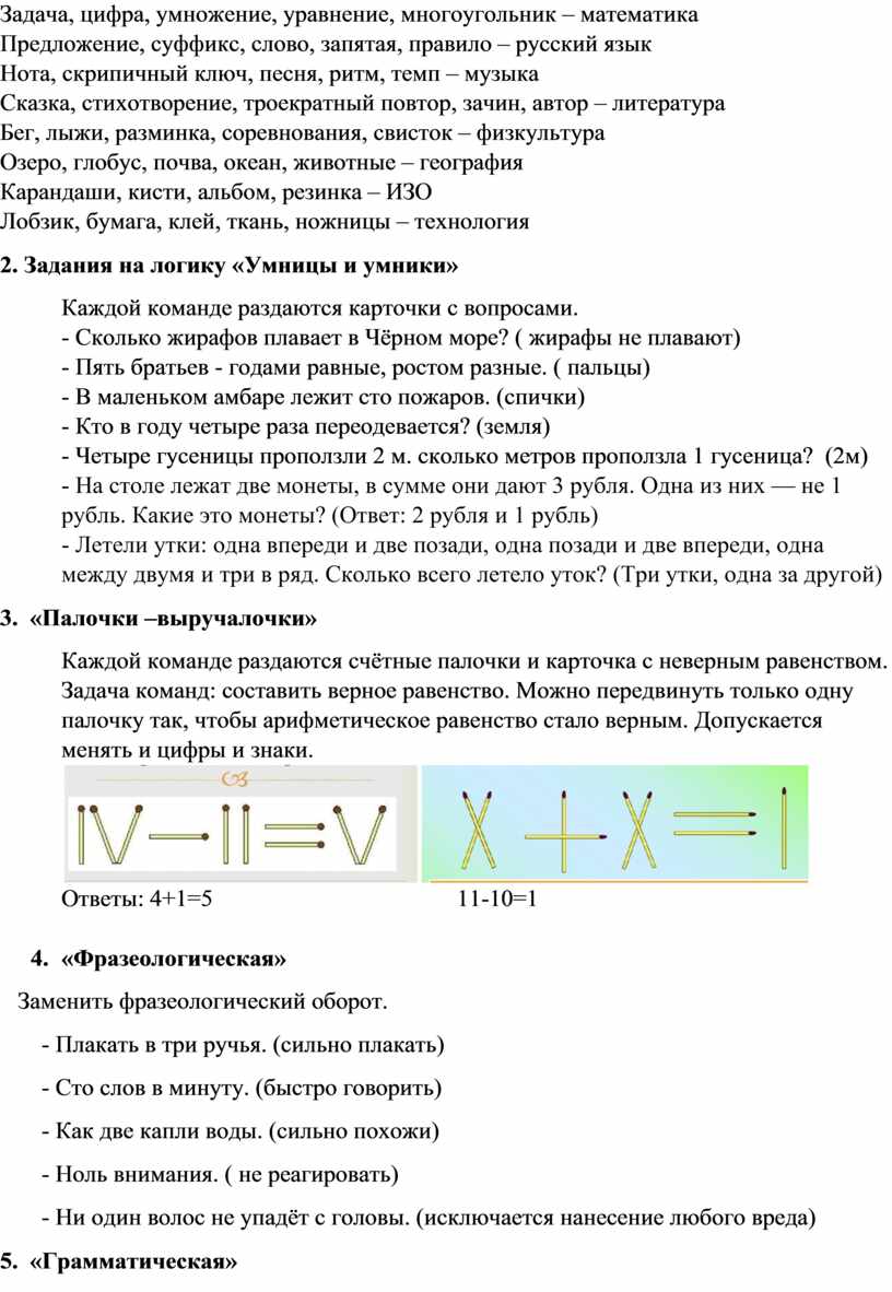 За каждый правильный ответ в задании присуждается 1 бал. Дополнительные 2 бала присуждаются команде, которая выполнила задание быстрее с большим количеством правильных ответов. (Задания для марафона распечатываются на индивидуальных листочках для каждой команды)
