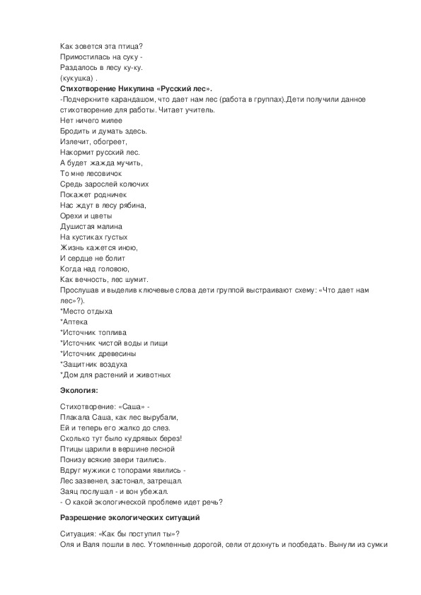 Подчеркните карандашом, что дает нам лес (работа в группах).Дети получили данное
