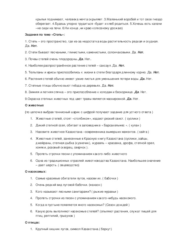 Цель: Закрепить знания по теме « Растительный и животный мир Казахстана».