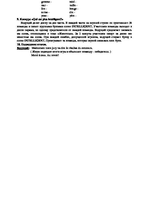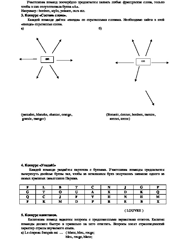 2. Конкурс «Je n’ aime pas la lettre «А».Участникам команд поочерёдно предлагается назвать любые французские слова, только