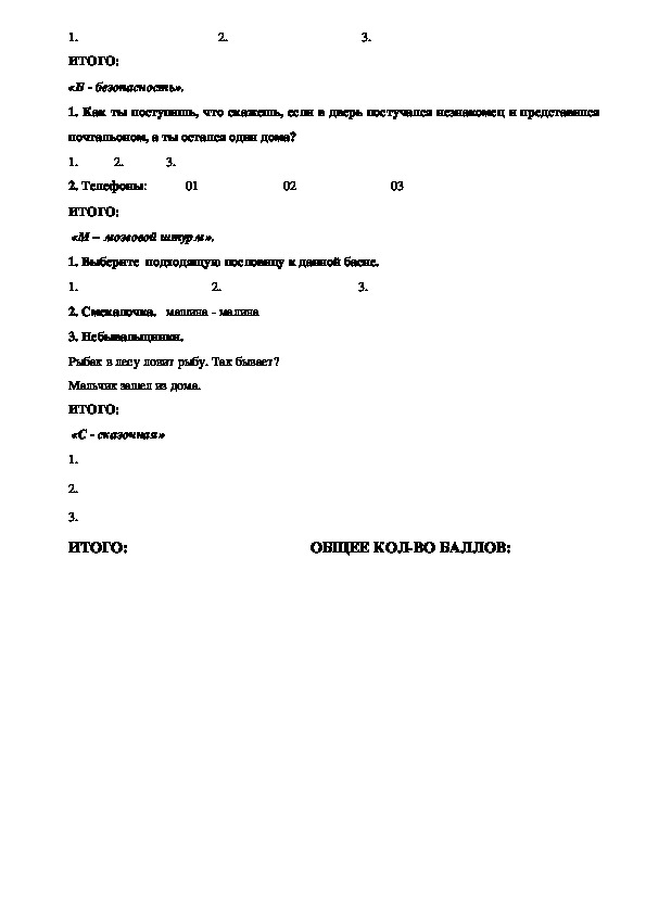 ИТОГО: ОБЩЕЕ КОЛВО БАЛЛОВ: