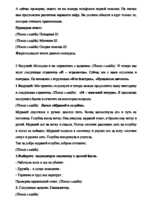 огласит результаты конкурса.2 Ведущий: Мы отправляемся с вами на следующую страничку