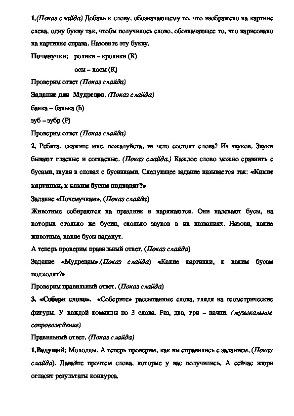 1.Ведущий: Молодцы. А теперь проверим, как вы справились с заданием, (Показ
