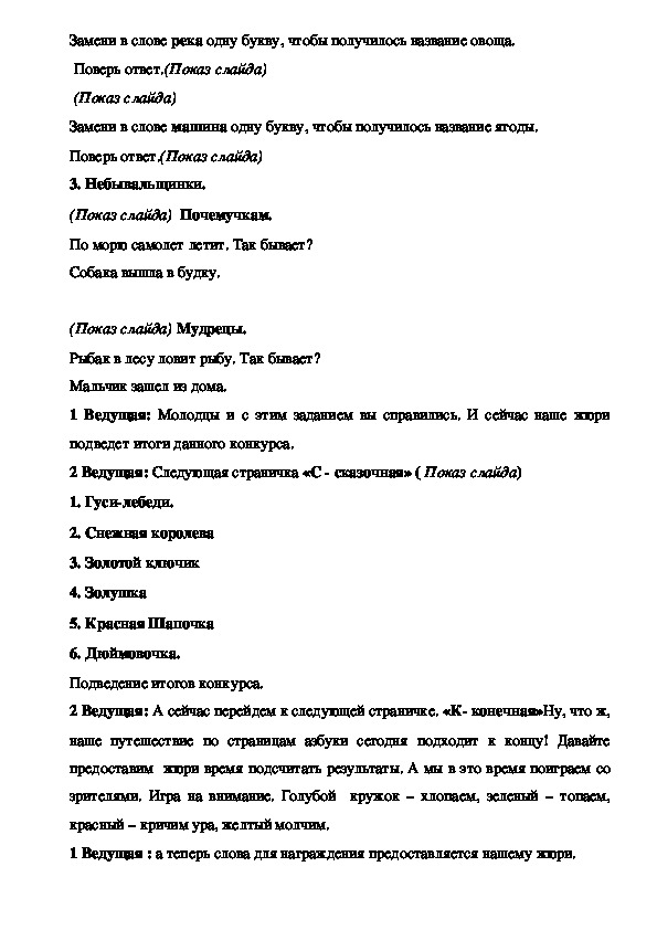 2 Ведущая: А сейчас перейдем к следующей страничке. «К конечная»Ну, что ж,