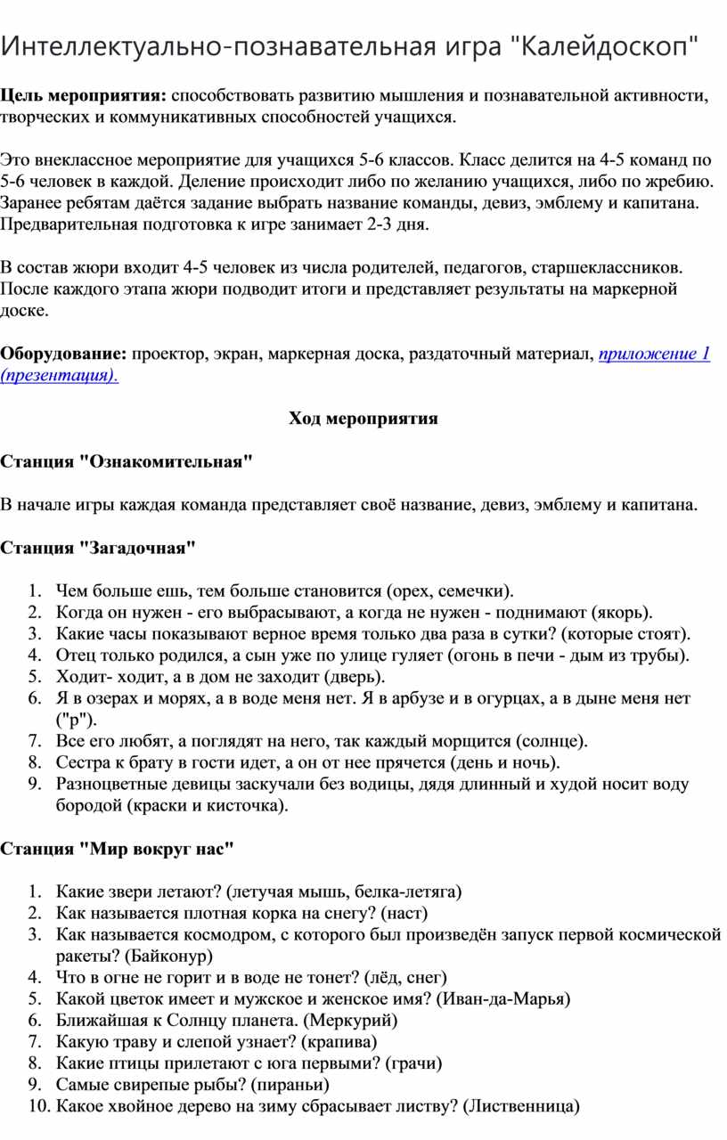 Интеллектуально-познавательная игра "Калейдоскоп"