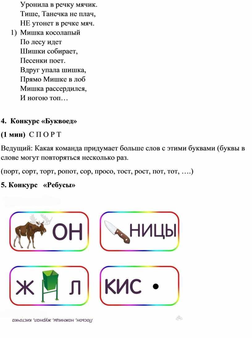 Ведущий: Какая команда придумает больше слов с этими буквами (буквы в слове могут повторяться несколько раз.