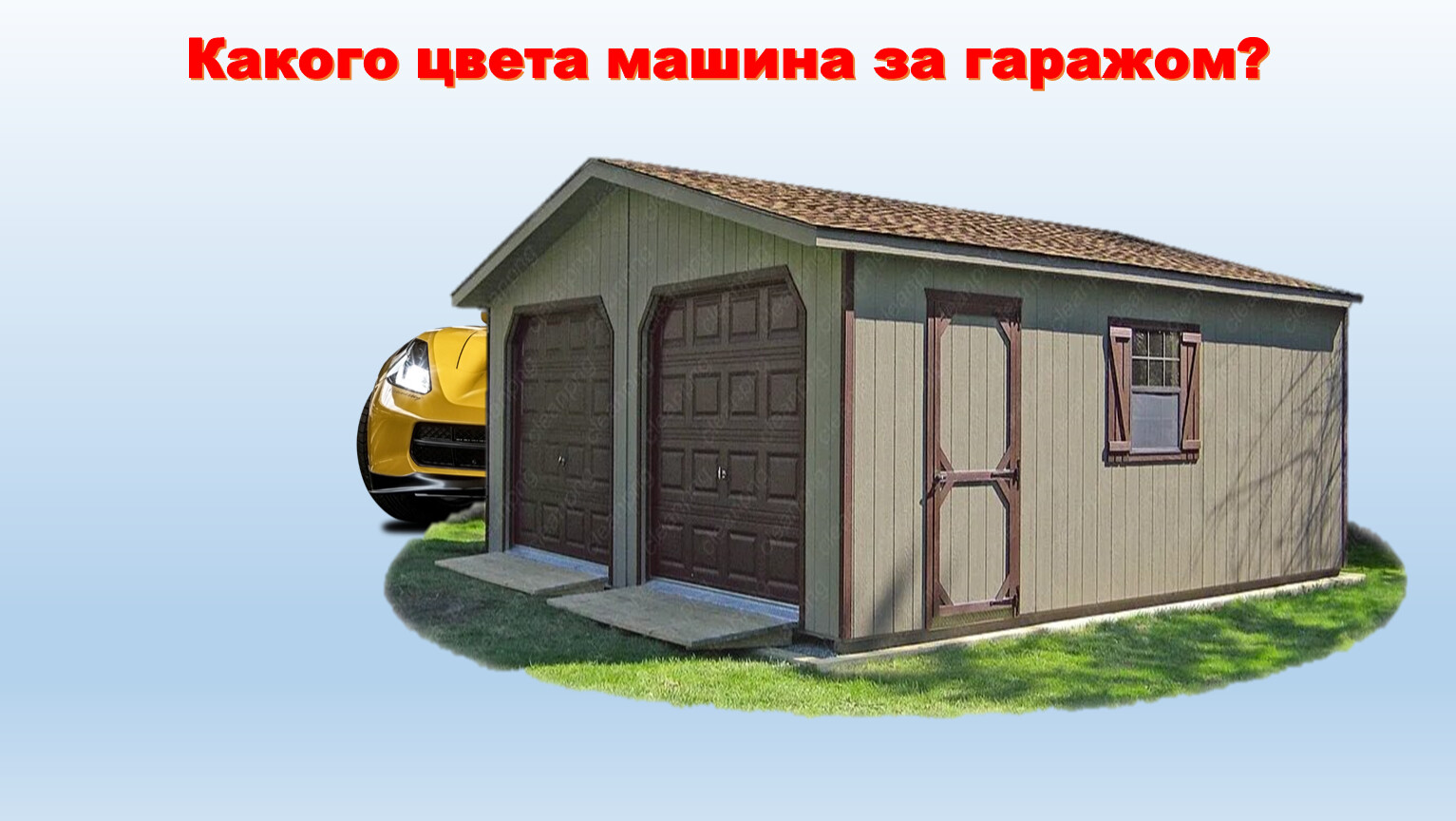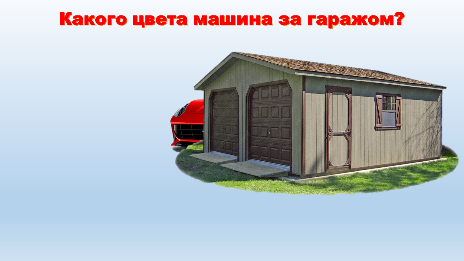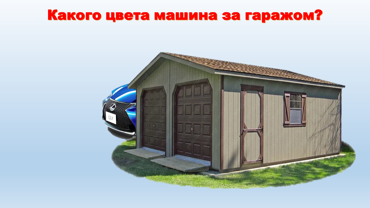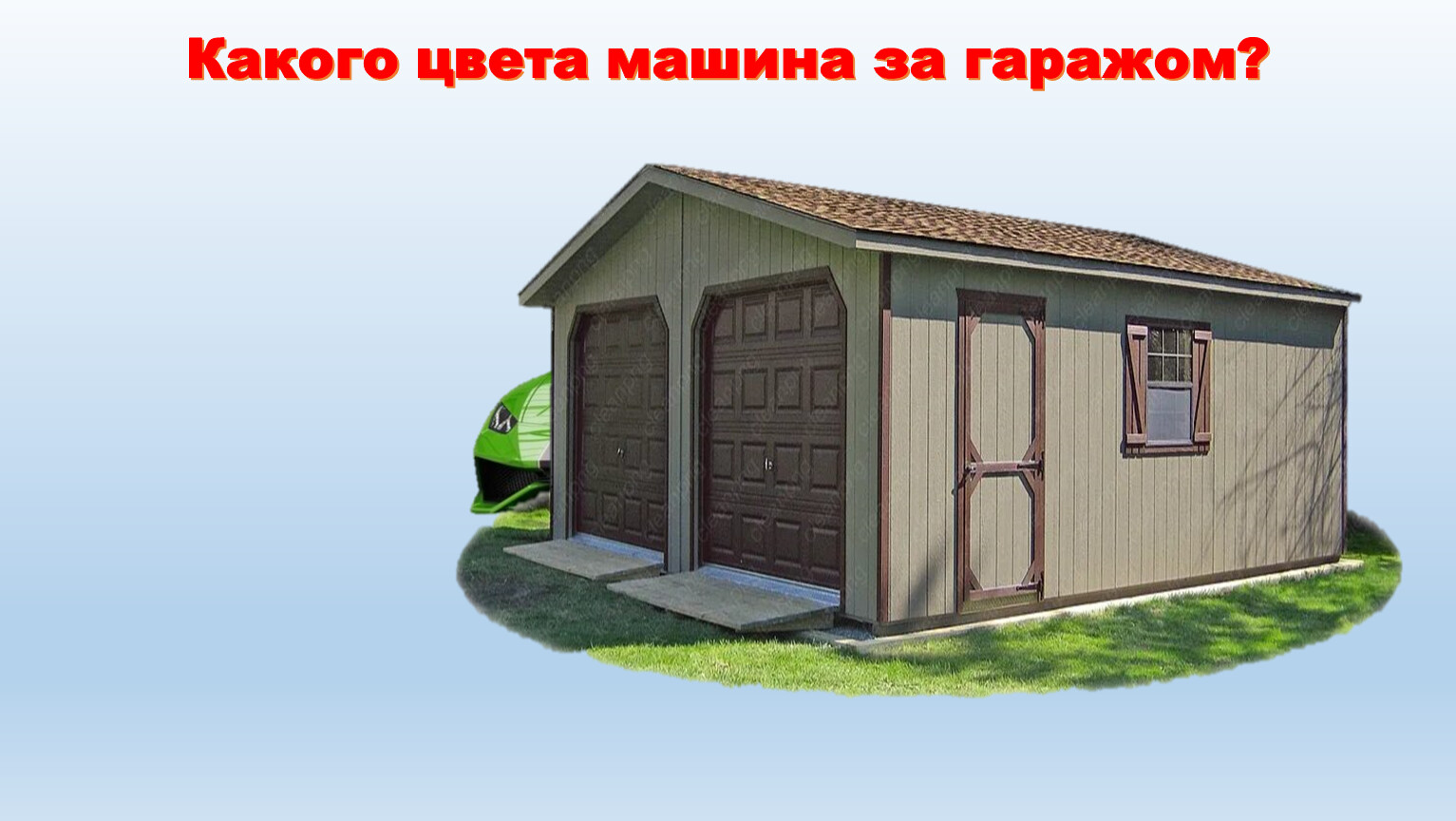 Какого цвета машина за гаражом?