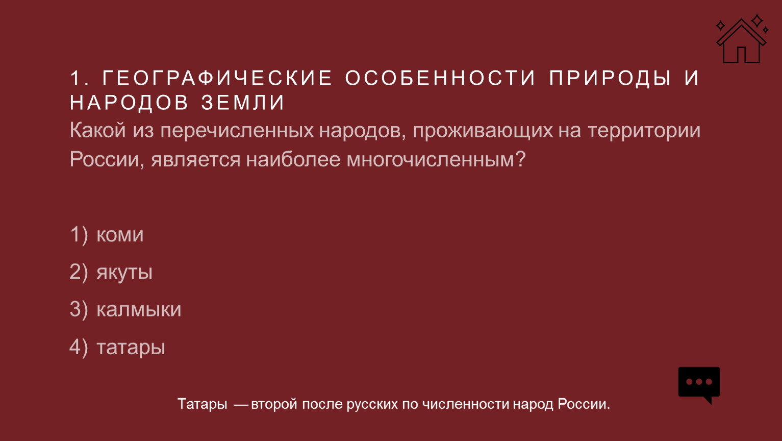 Какой из перечисленных народов, проживающих на территории России, является наиболее многочисленным?