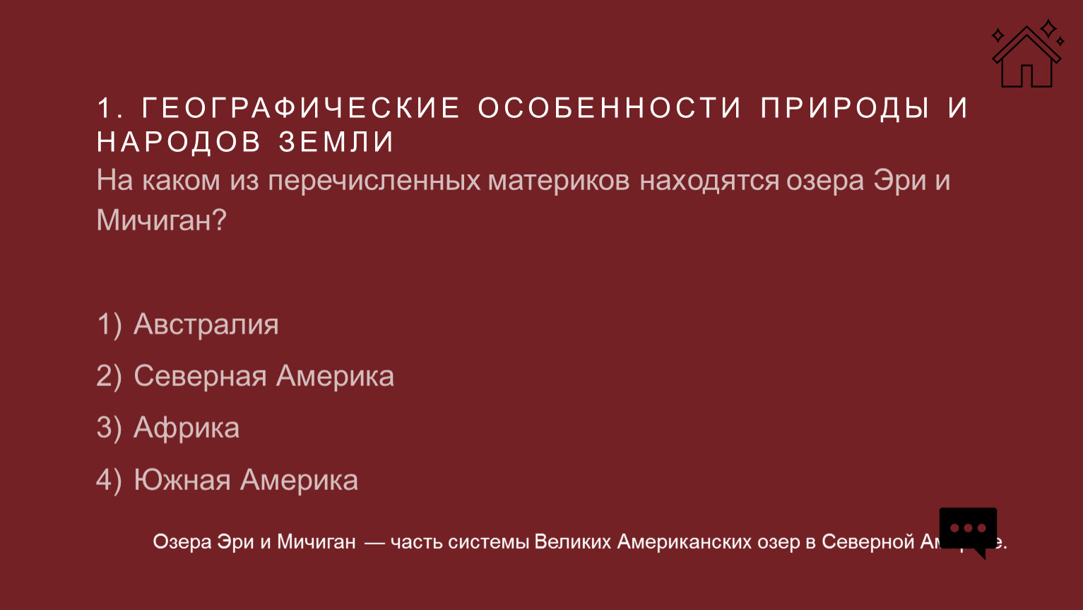 На каком из перечисленных материков находятся озера Эри и Мичиган?