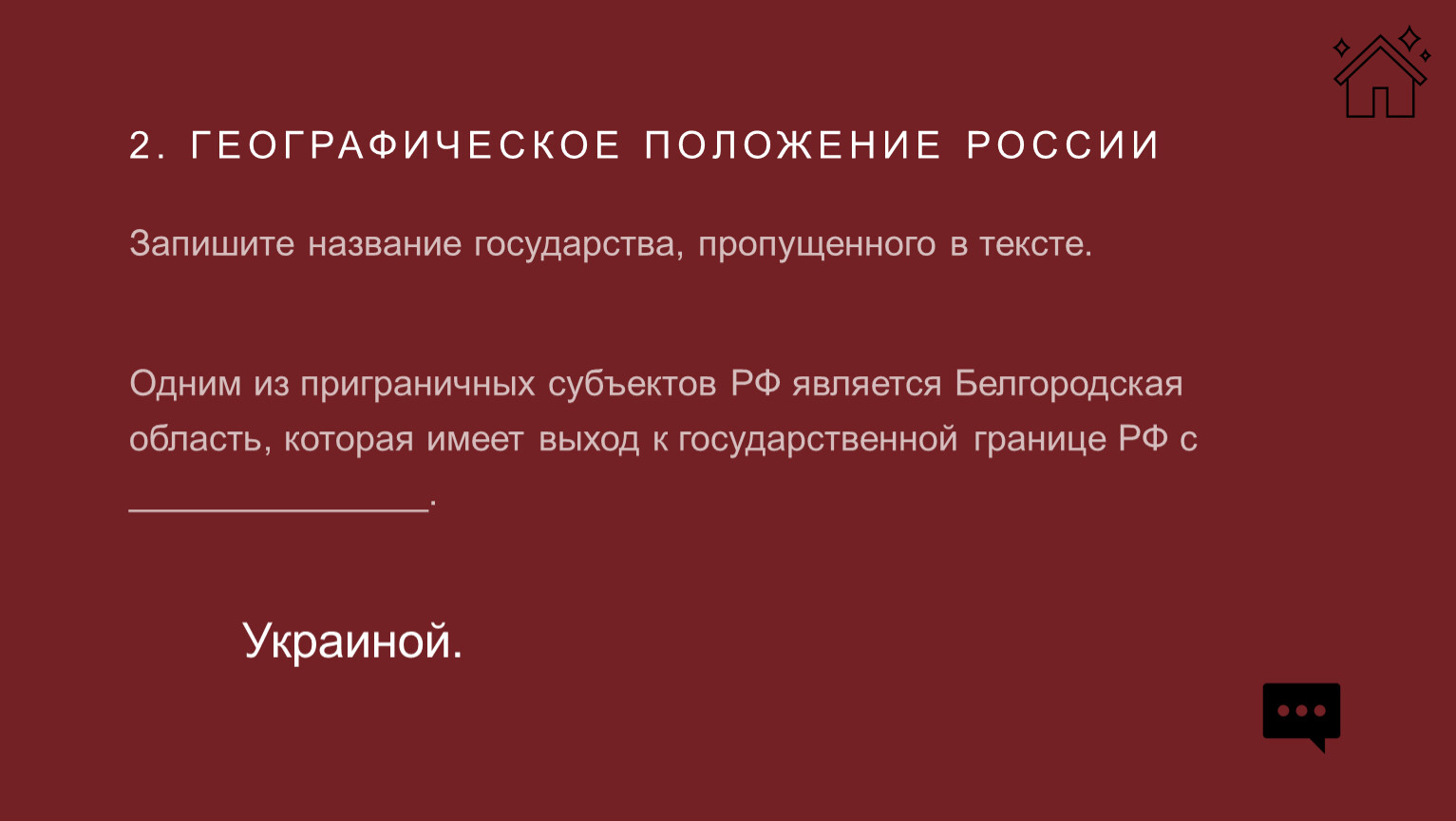 Одним из приграничных субъектов РФ является Белгородская область, которая имеет выход к государственной границе РФ с _______________.