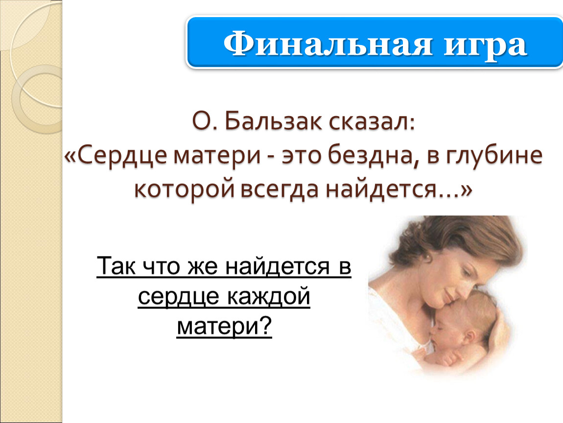 О. Бальзак сказал: «Сердце матери - это бездна, в глубине которой всегда найдется…»
