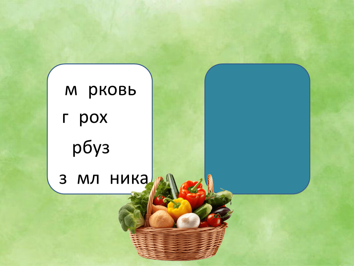 Дорогой друг! Предлагаю тебе собрать урожай. Для этого тебе нужно вспомнить правописание словарных слов. Для проверки своего ответа кликни по «корзине с овощами» левой кнопкой мыши. Чтобы перейти на следующий слайд, левой кнопкой мыши, сделай произвольный щелчок .Желаю удачи!!!