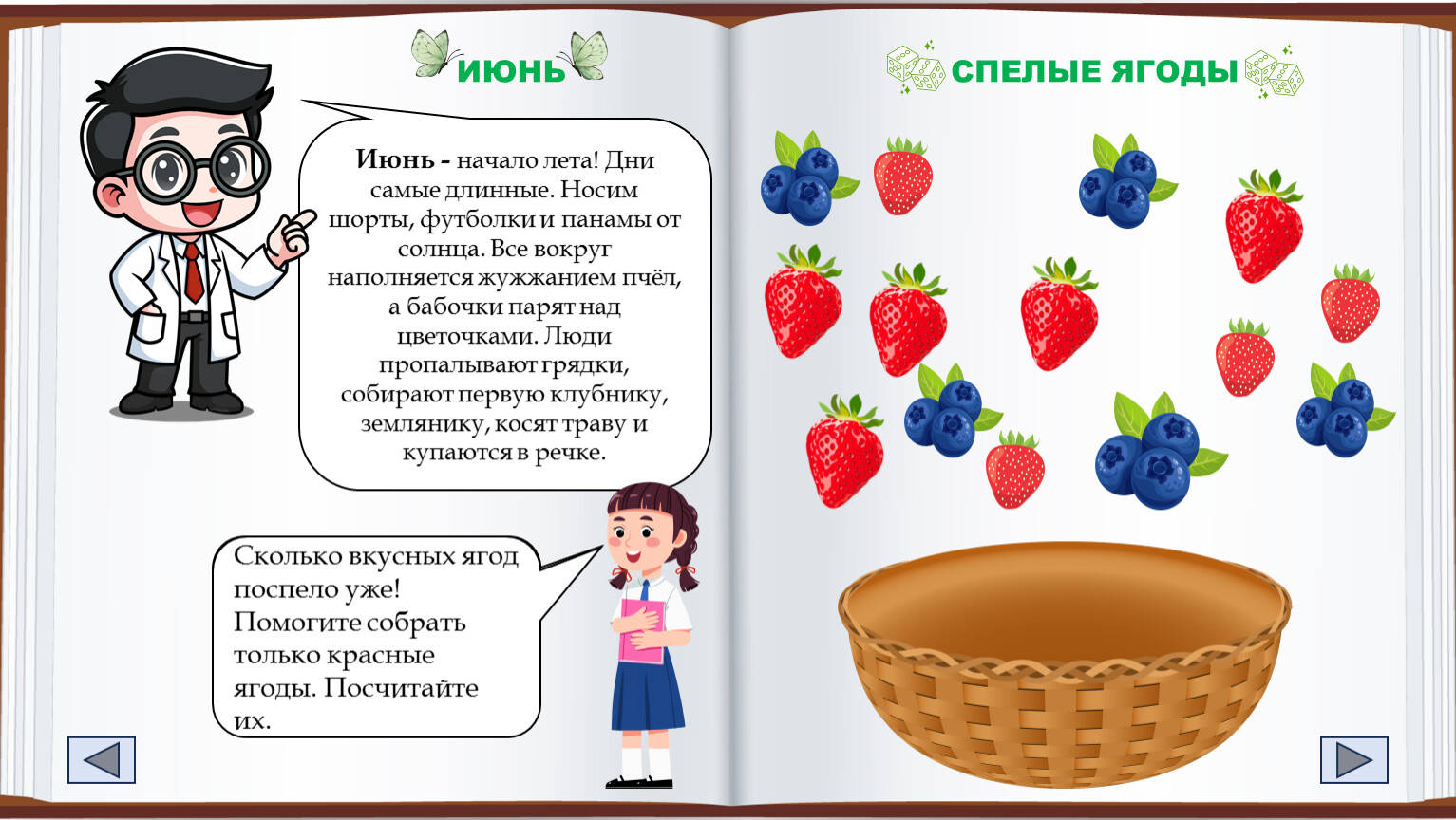 Сколько вкусных ягод поспело уже! Помогите собрать только красные ягоды. Посчитайте их.