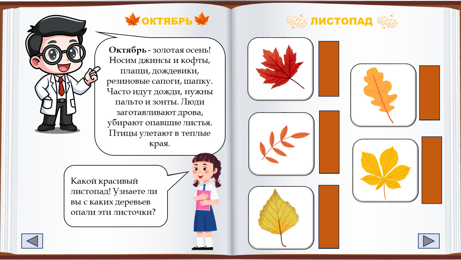 Октябрь - золотая осень! Носим джинсы и кофты, плащи, дождевики, резиновые сапоги, шапку. Часто идут дожди, нужны пальто и зонты. Люди заготавливают дрова, убирают опавшие листья. Птицы улетают в теплые края.