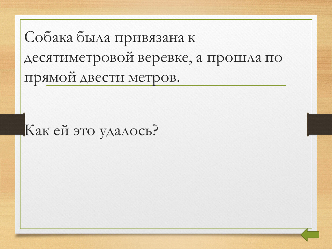 Собака была привязана к десятиметровой веревке, а прошла по прямой двести метров.