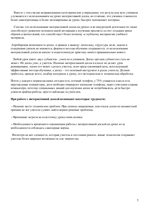 интерактивной доски не вносит в педагогическую практику ничего принципиально нового.