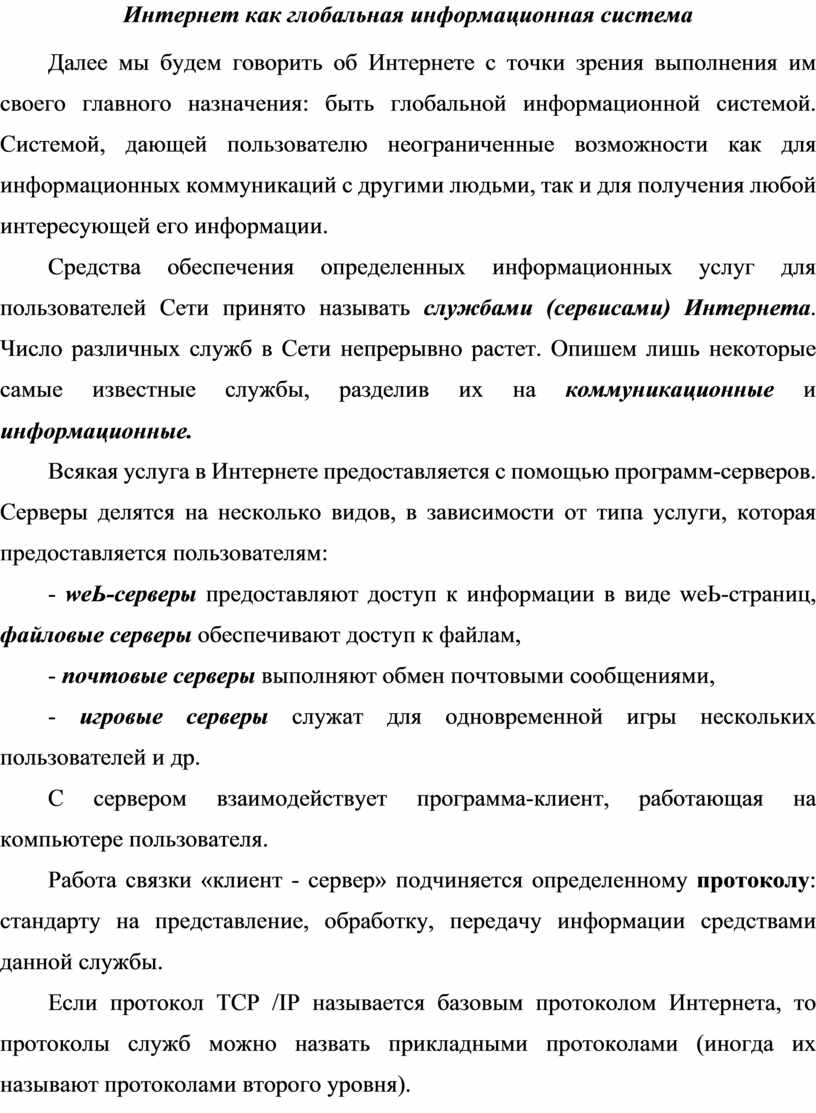 Далее мы будем говорить об Интернете с точки зрения выполнения им своего главного назначения: быть глобальной информационной системой. Системой, дающей пользователю неограниченные возможности как для информационных коммуникаций с другими людьми, так и для получения любой интересующей его информации.
