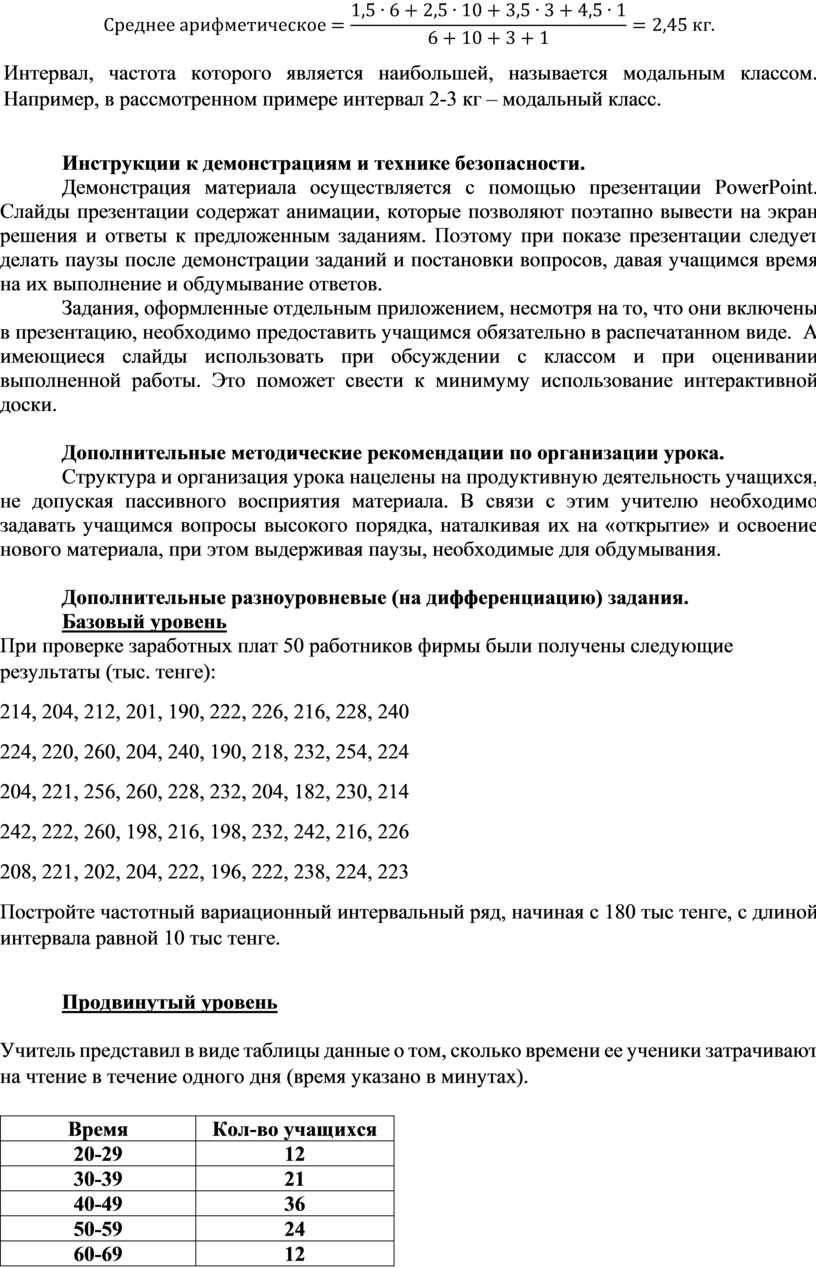4. Нахождение среднего арифметического данных, представленных в виде интервальной таблицы.