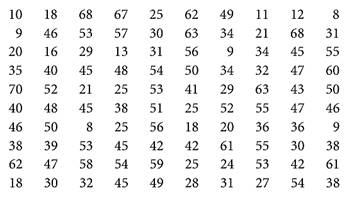 Запишите эти результаты в виде сгруппированной частотной таблицы с 8 интервалами.