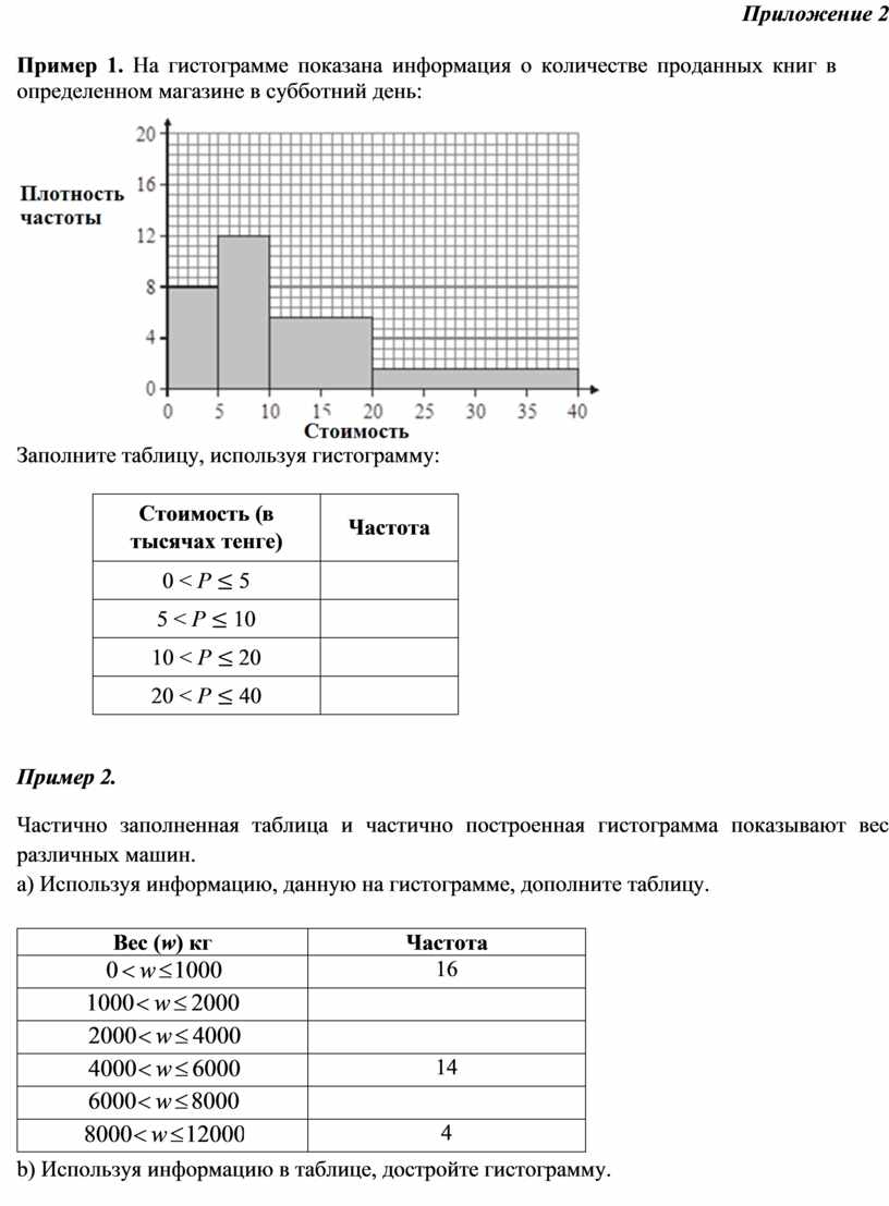 Заполните таблицу, используя гистограмму: