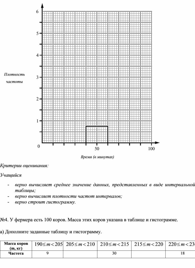 №4. У фермера есть 100 коров. Масса этих коров указана в таблице и гистограмме.