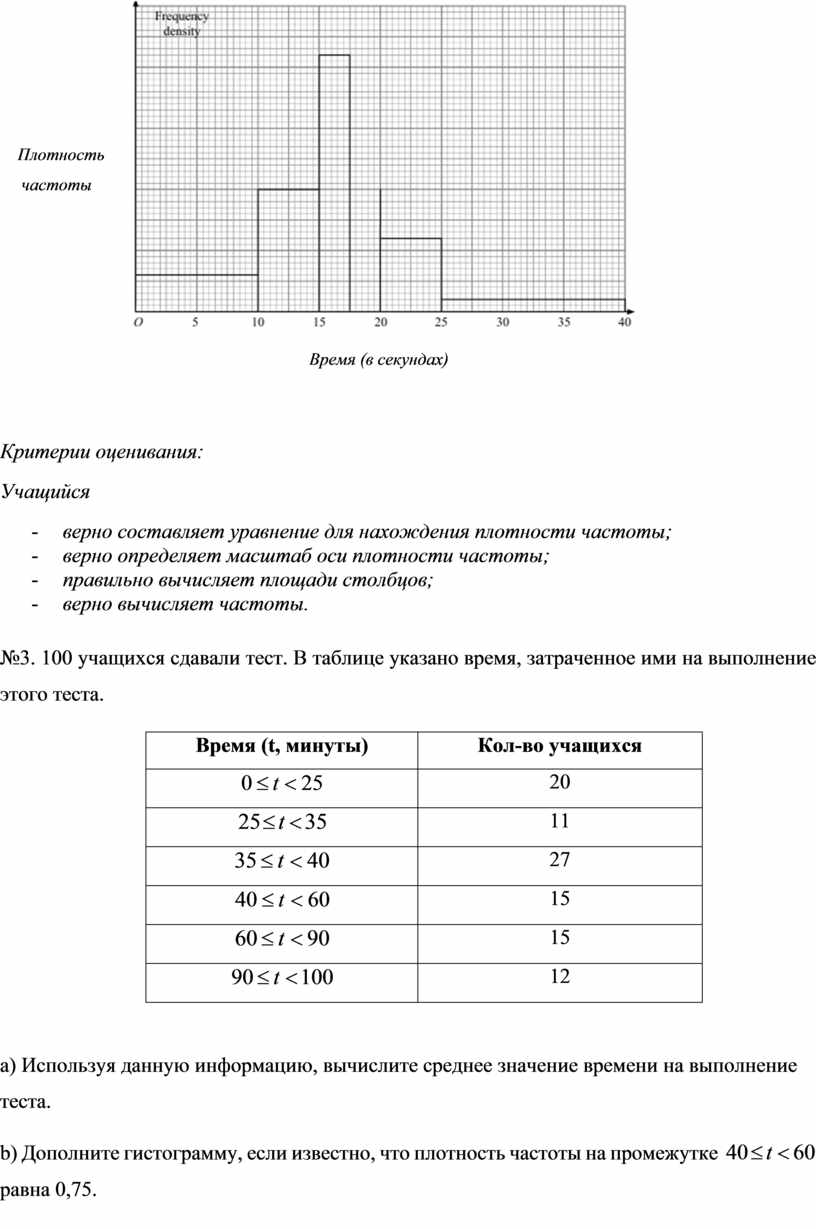 №3. 100 учащихся сдавали тест. В таблице указано время, затраченное ими на выполнение этого теста.