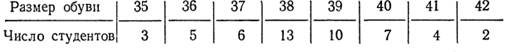 Задание. Построить полигон частот и гистограммы частот, выбрав интервалы 35—38, 39—42, по данным распределения студентов по размеру обуви.