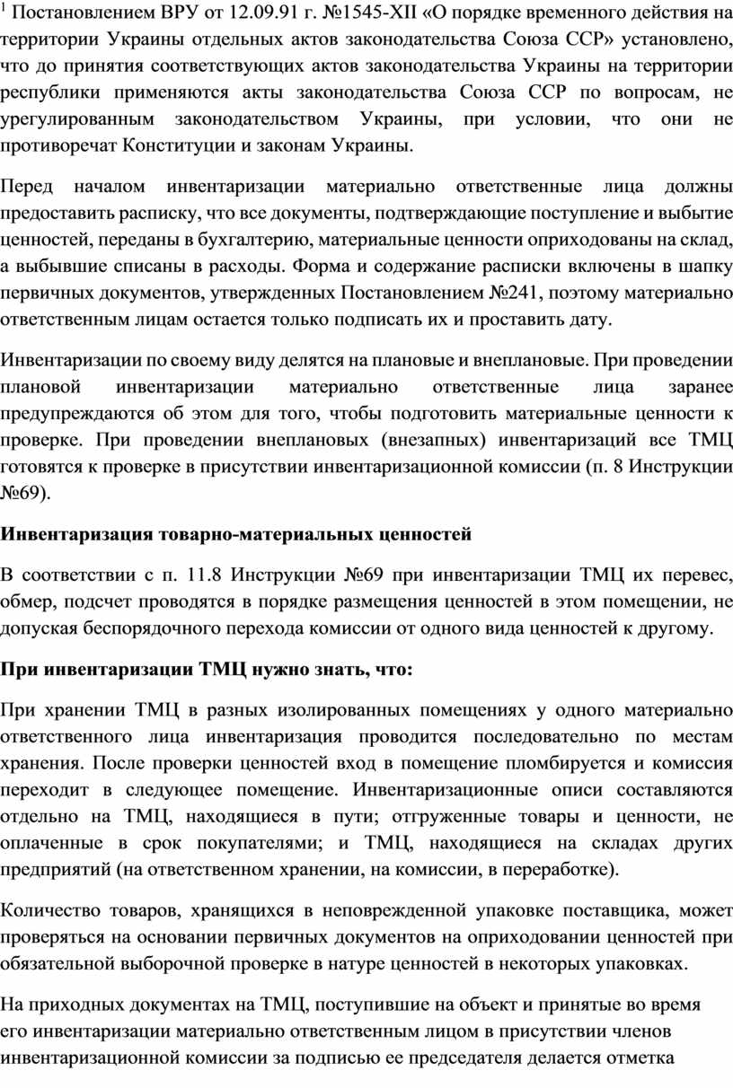 1 Постановлением ВРУ от 12.09.91 г. №1545-XII «О порядке временного действия на территории Украины отдельных актов законодательства Союза ССР» установлено, что до принятия соответствующих актов законодательства Украины на территории республики применяются акты законодательства Союза ССР по вопросам, не урегулированным законодательством Украины, при условии, что они не противоречат Конституции и законам Украины.