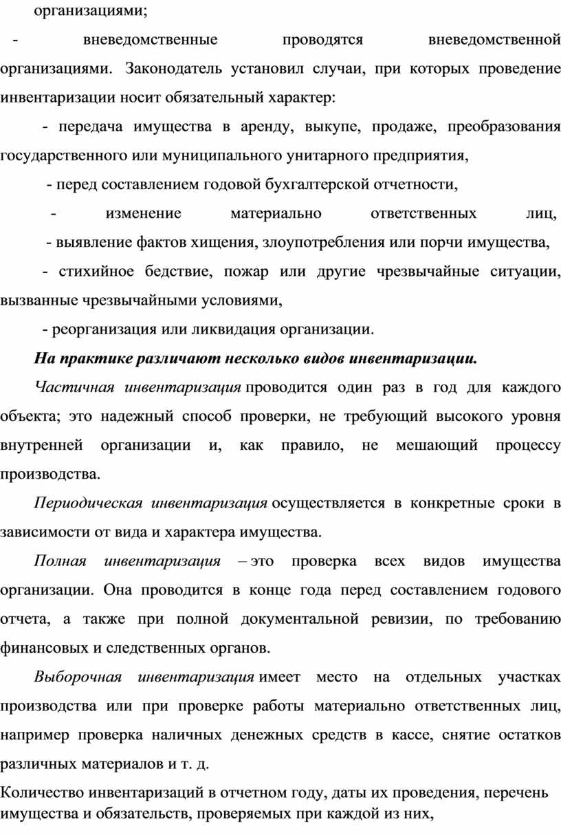 Периодическая инвентаризация осуществляется в конкретные сроки в зависимости от вида и характера имущества.