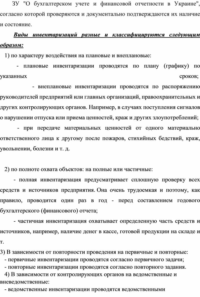 - полная инвентаризация предусматривает сплошную проверку всех средств и источников предприятия. Она очень трудоемкая и поэтому, как правило, проводится один раз в год - перед составлением годового бухгалтерского (финансового) отчета;