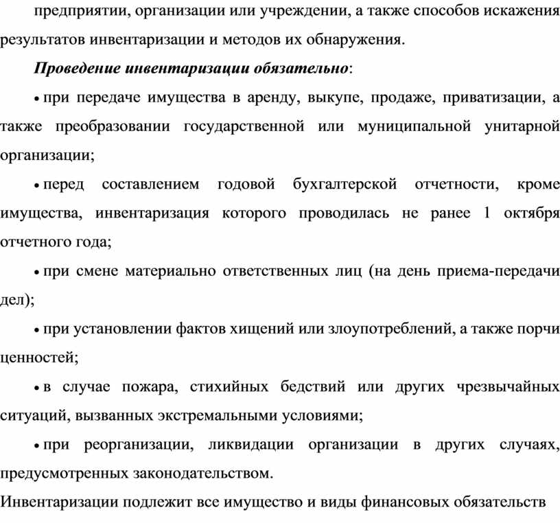 Инвентаризации подлежит все имущество и виды финансовых обязательств