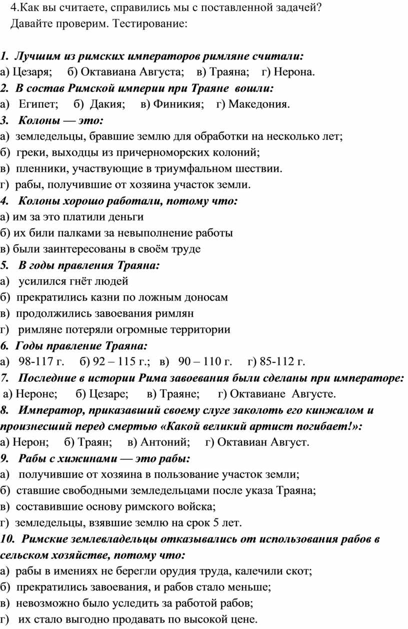 И прежде чем отправиться в дальнейший путь, мы проверим, а весь ли багаж знаний о Римской империи у нас сохранился. Потренируем наши мозги, покажем наши знания.