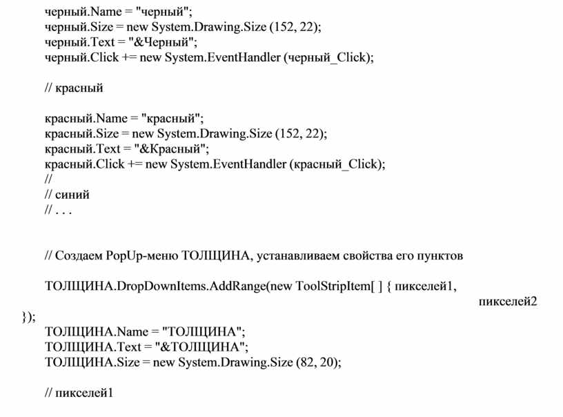 ToolStripMenuItem ТОЛЩИНА = new ToolStripMenuItem(); ToolStripMenuItem пикселей1 = new ToolStripMenuItem(); ToolStripMenuItem пикселей2 = new ToolStripMenuItem();
