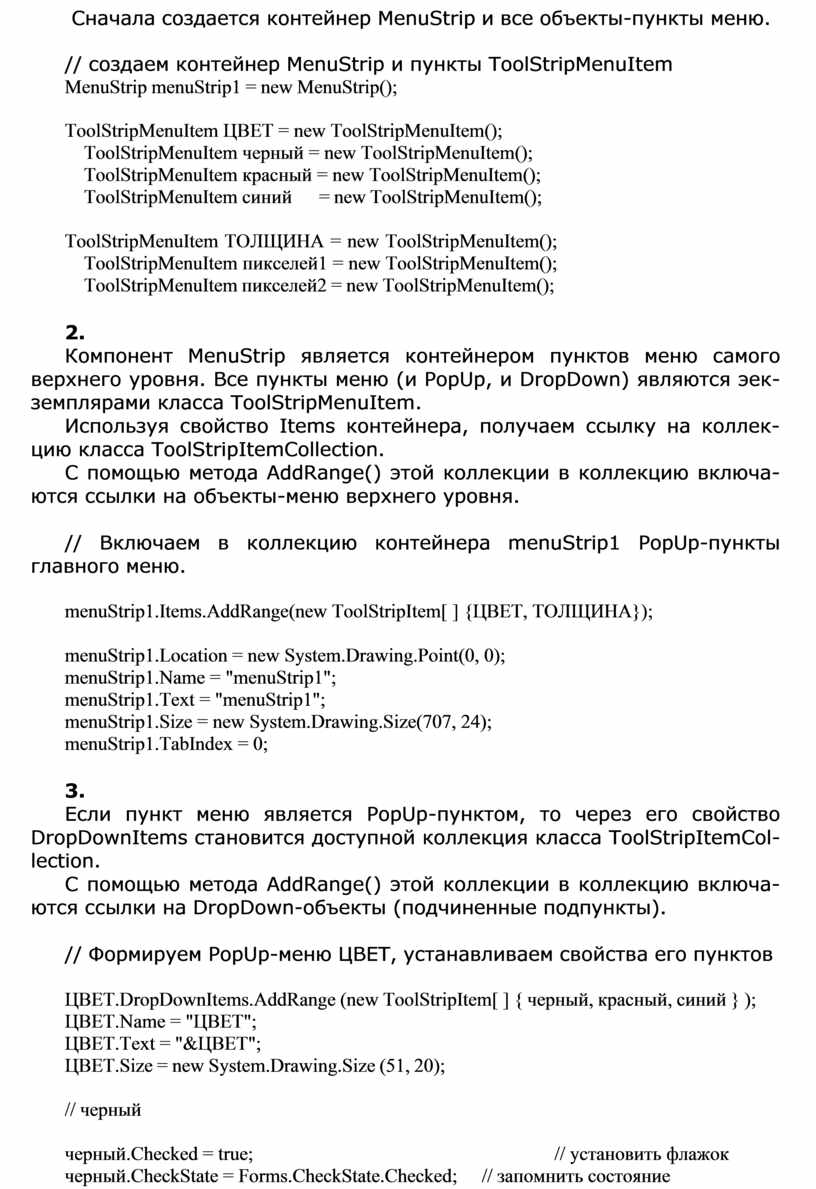 menuStrip1.Items.AddRange(new ToolStripItem[ ] {ЦВЕТ, ТОЛЩИНА}); menuStrip1.Location = new System.Drawing.Point(0, 0);