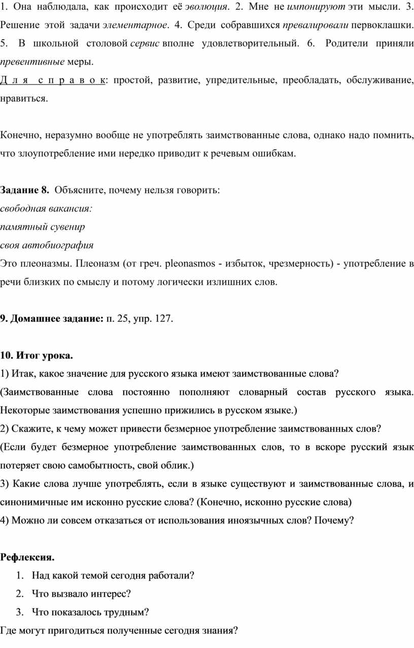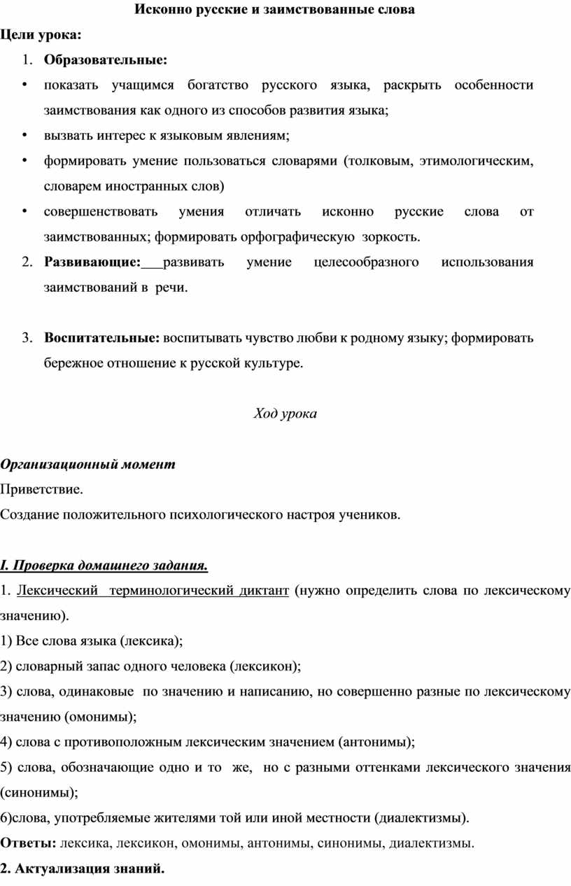 2. Развивающие: развивать умение целесообразного использования заимствований в речи.