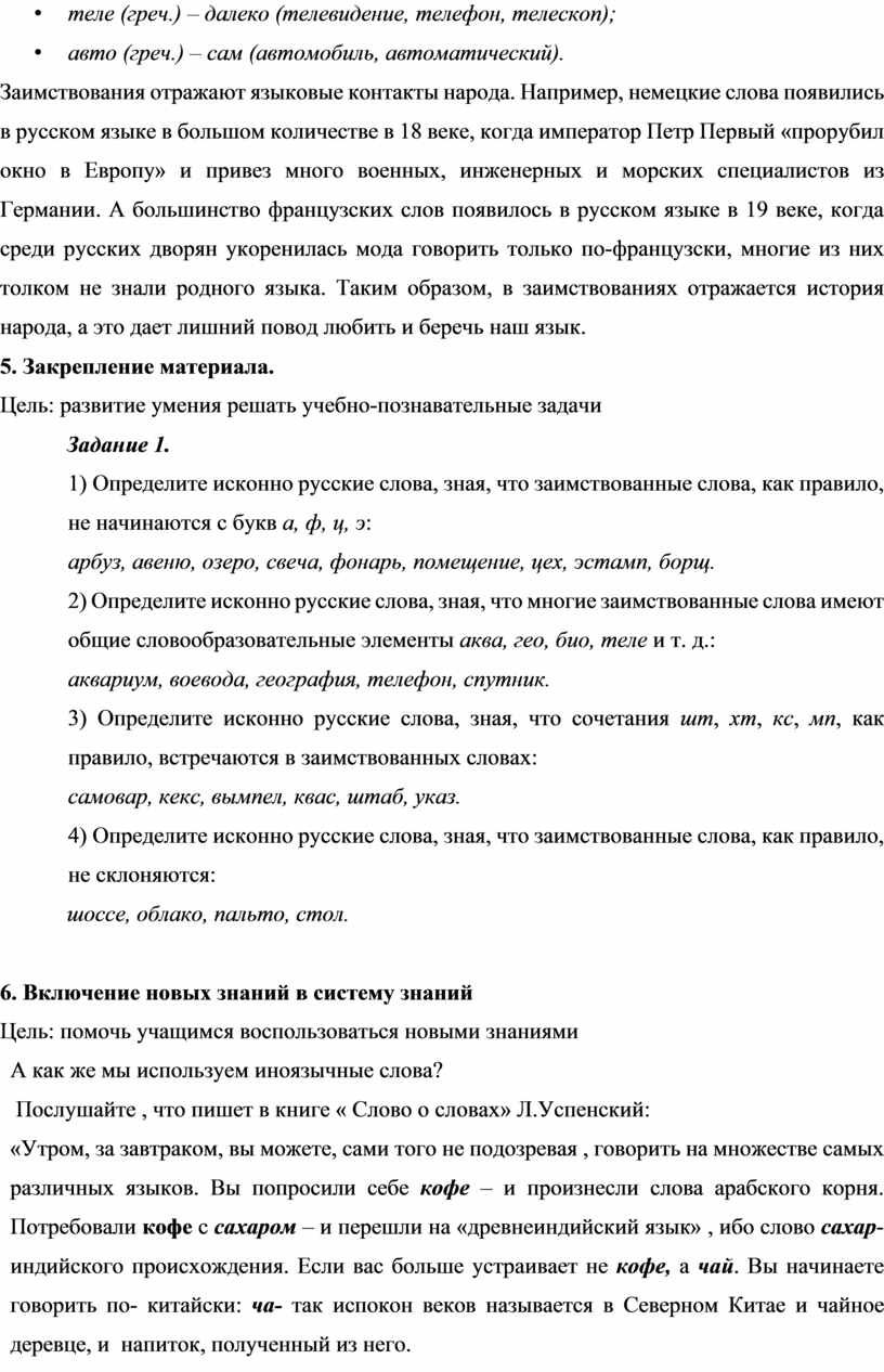 • показать учащимся богатство русского языка, раскрыть особенности заимствования как одного из способов развития языка;