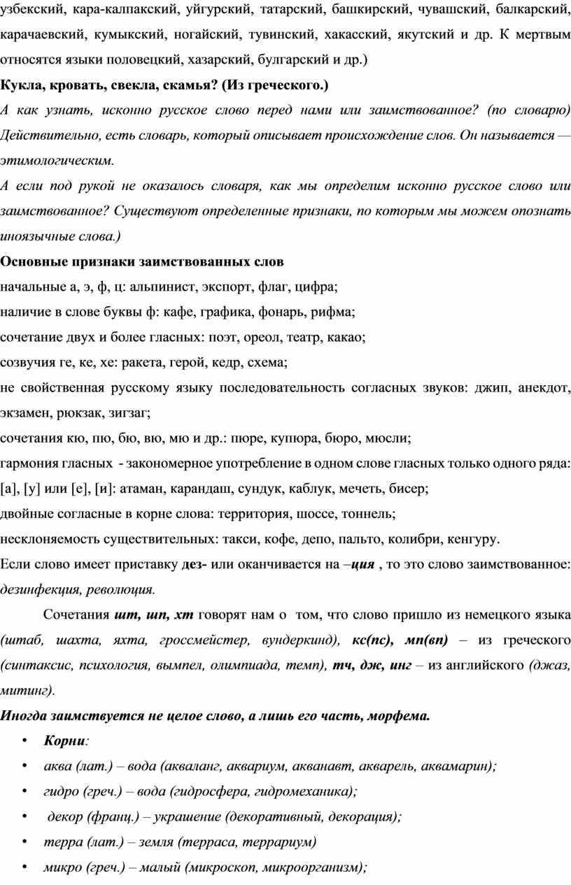 А если под рукой не оказалось словаря, как мы определим исконно русское слово или заимствованное? Существуют определенные признаки, по которым мы можем опознать иноязычные слова.)