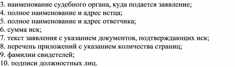 Исковые заявления должны в обязательном порядке иметь следующие реквизиты: