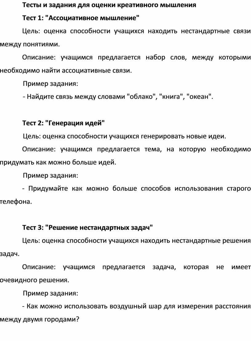 Разработка тестов и заданий для оценки уровня креативности