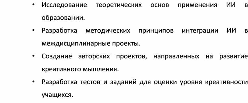 • Разработка методических принципов интеграции ИИ в междисциплинарные проекты.