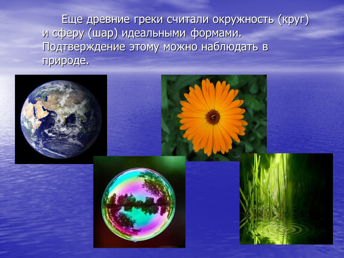 Еще древние греки считали окружность (круг) и сферу (шар) идеальными формами. Подтверждение этому можно наблюдать в природе.