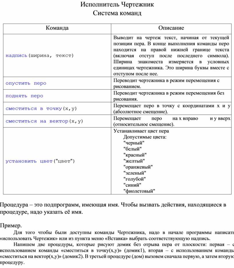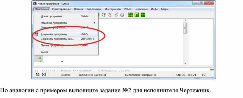 По аналогии с примером выполните задание №2 для исполнителя Чертежник.