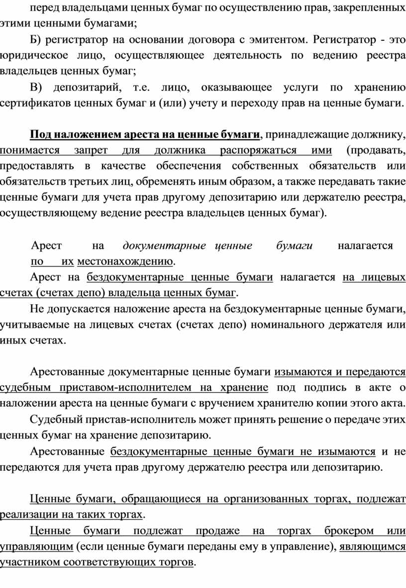В) ареста ценных бумаг и денежных средств, находящихся у профессионального участника рынка ценных бумаг на счетах, указанных в статьях 73 и 73.1 ФЗ «Об исполнительном производстве».