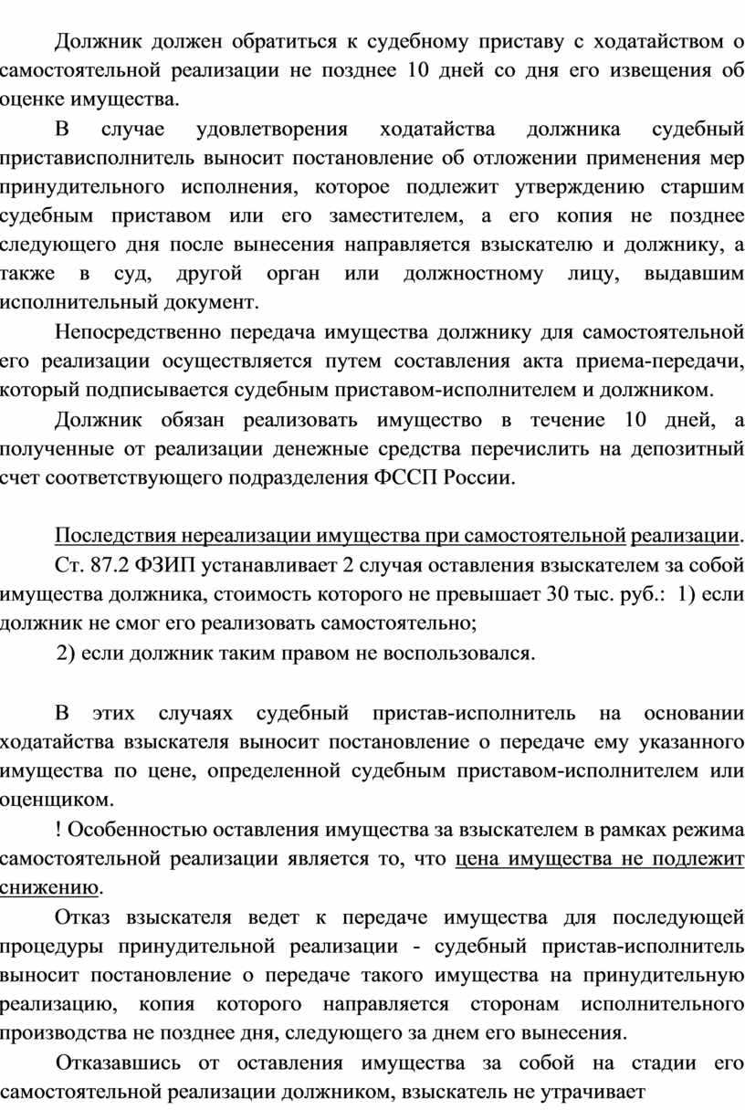 Обращение взыскания на имущество должника включает изъятие имущества и (или) его реализацию, осуществляемую должником самостоятельно, или принудительную реализацию либо передачу взыскателю. ! Является мерой принудительного исполнения.