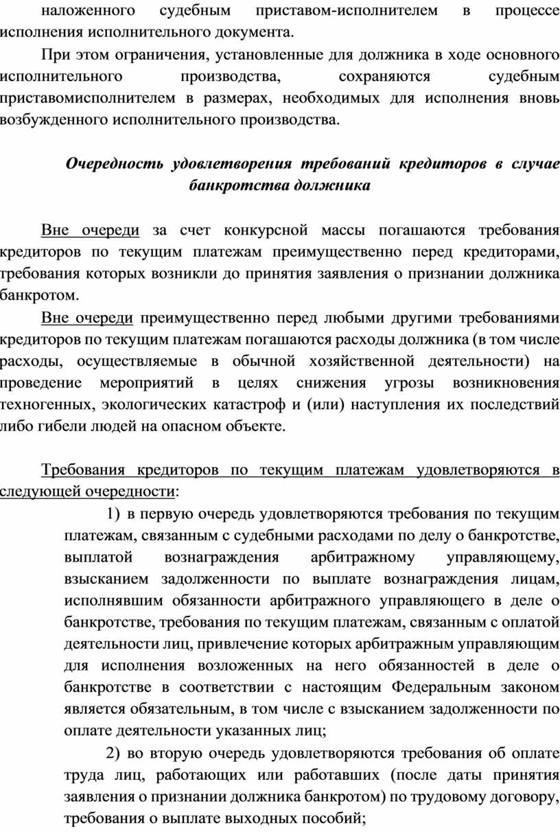 Требования кредиторов по текущим платежам удовлетворяются в следующей очередности: