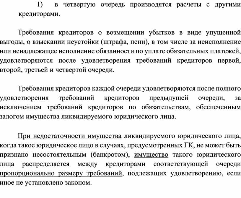 4) в четвертую очередь удовлетворяются все остальные требования.