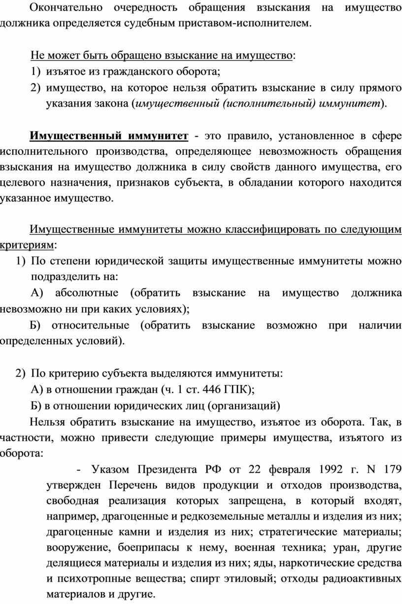 2) имущество, на которое нельзя обратить взыскание в силу прямого указания закона (имущественный (исполнительный) иммунитет).