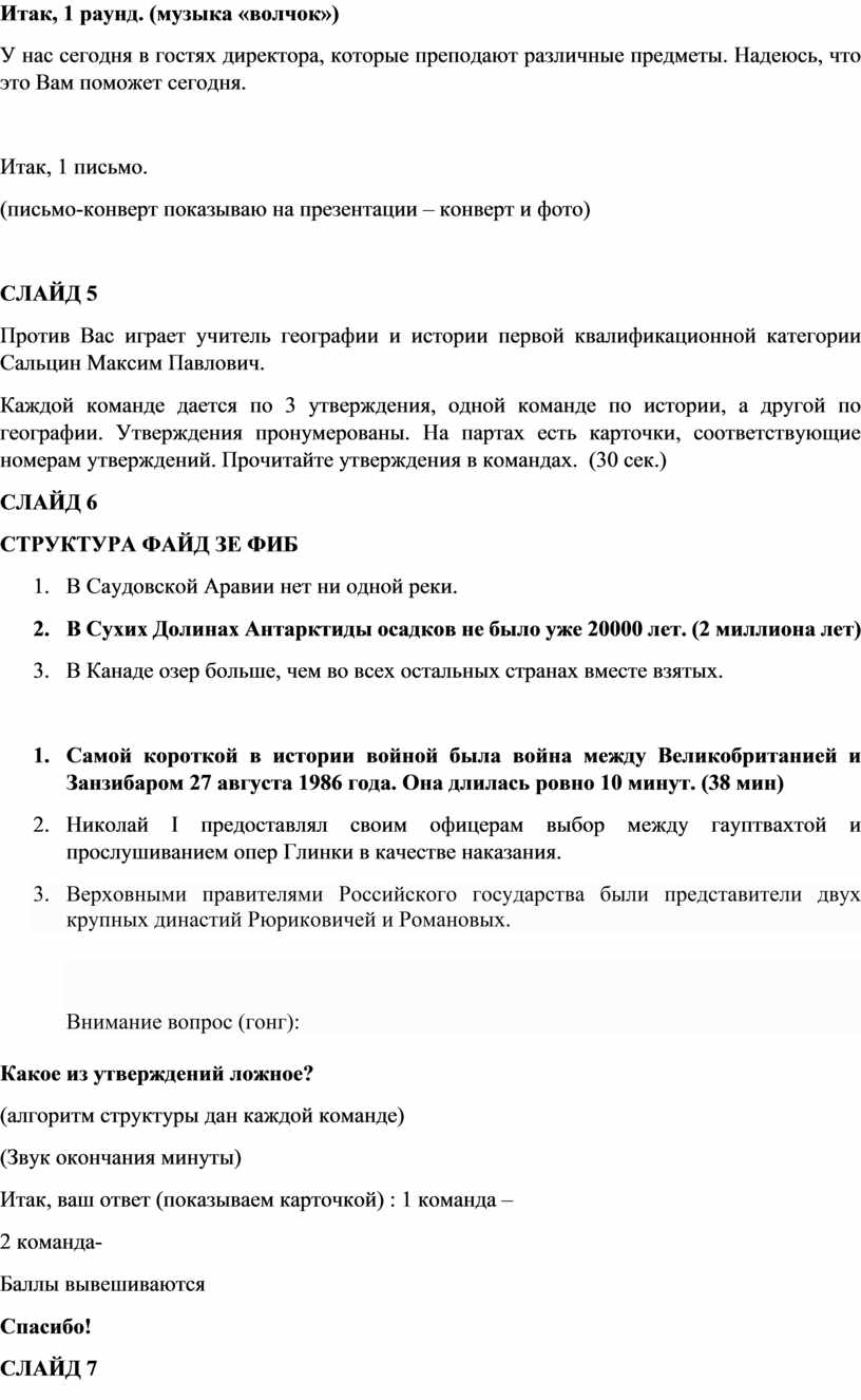 Каждой команде дается по 3 утверждения, одной команде по истории, а другой по географии. Утверждения пронумерованы. На партах есть карточки, соответствующие номерам утверждений. Прочитайте утверждения в командах. (30 сек.)