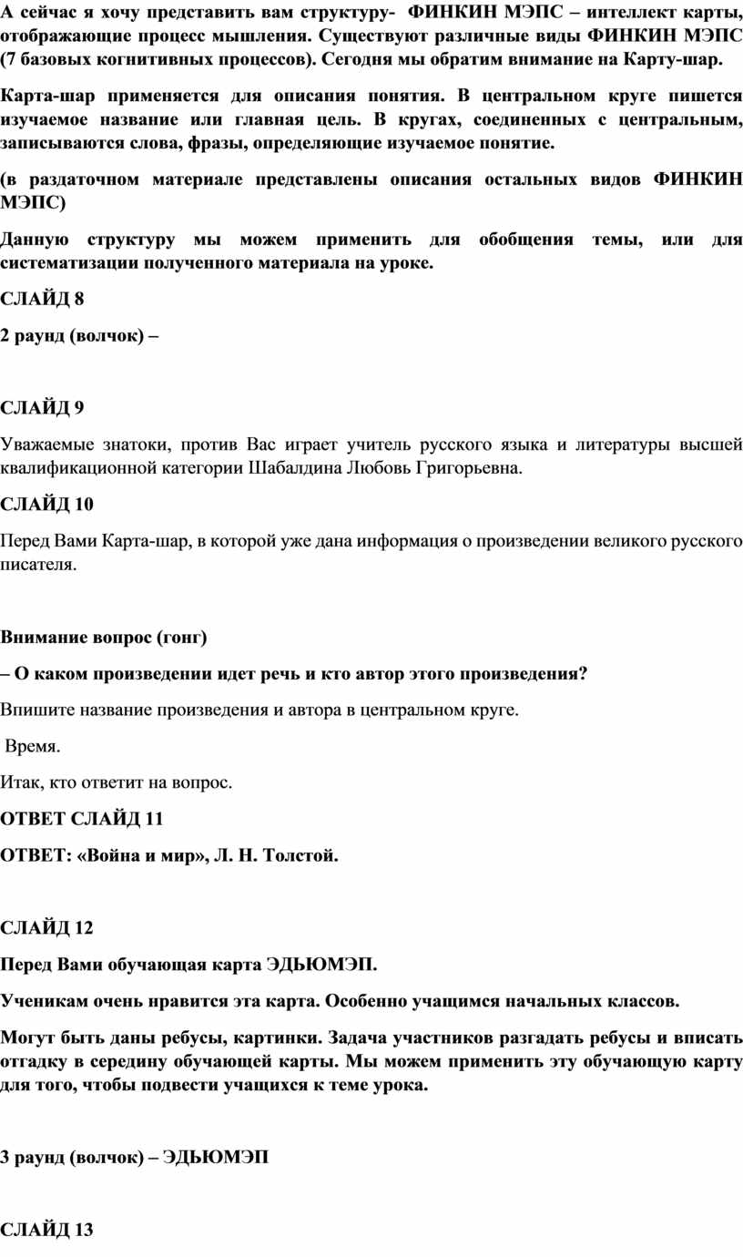 Перед Вами Карта-шар, в которой уже дана информация о произведении великого русского писателя.